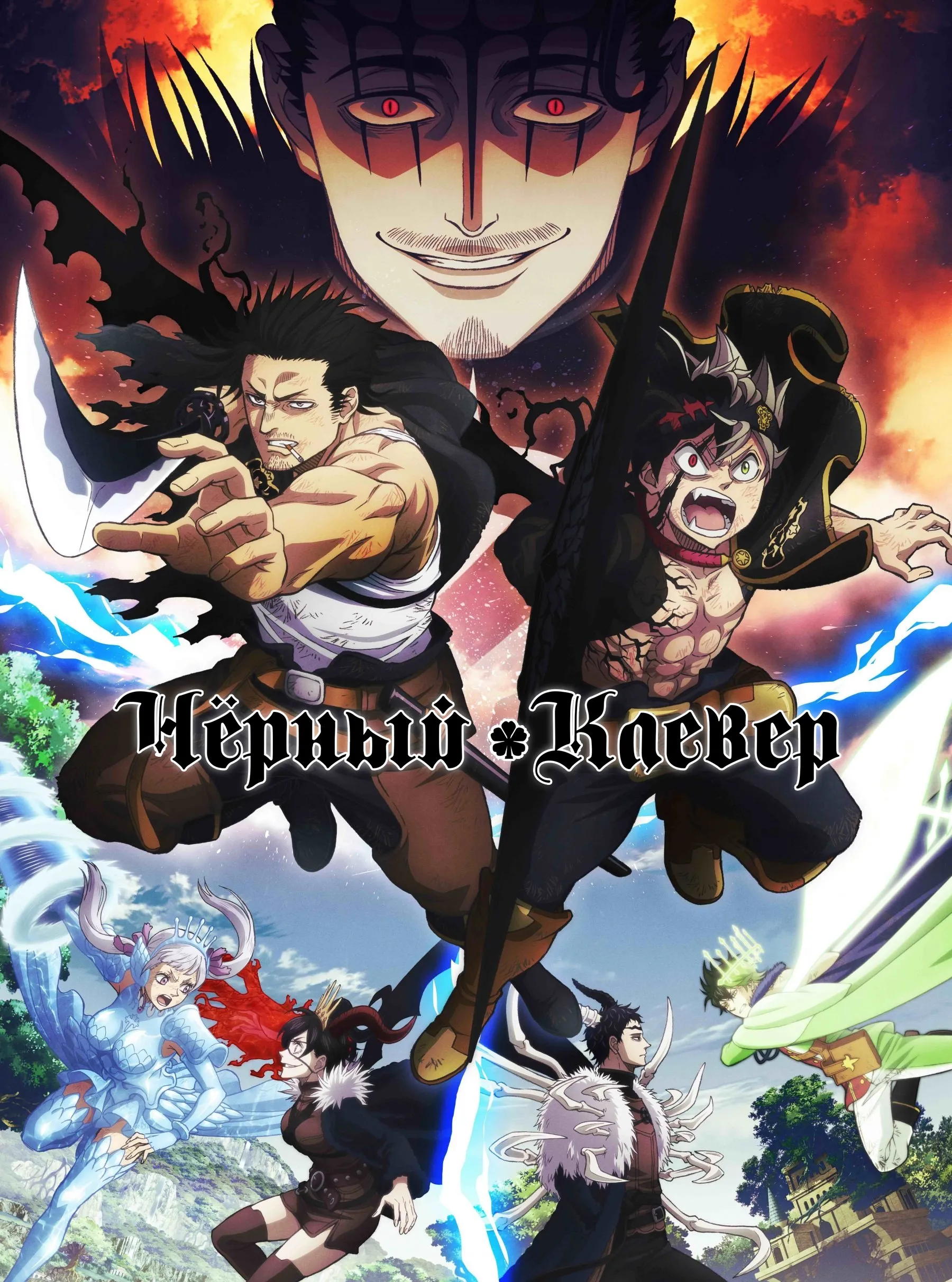 В мире, где всё решает магия, двое сирот из монастыря дают себе клятву добраться до вершины — титула Короля магов. Спокойный и одарённый Юно с ранних лет управляет ветром, а вспыльчивый Аста, лишённый хоть искры чародейства, упорно тренирует тело и волю. На церемонии вручения гримуаров их пути расходятся: одному достаётся редкий том с четырёхлистным клевером, другого ждёт неожиданная сила, идущая наперекор самой магии. С этого дня соперничество друзей превращается в путь взросления: испытания отборов, первые задания в рыцарских отрядах, схватки с чудовищами и магами-ренегатами, тайны прошлого королевства. «Чёрный клевер» — это история о настойчивости и командной работе, о цене амбиций и силе характера, где громкие победы ковались из ежедневных тренировок, а мечта становится компасом даже тогда, когда мир даёт тебе ноль шансов.Чёрный клевер — все сезоны и серии онлайн